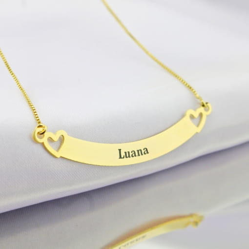 Colar coroa com nome e corações vazado